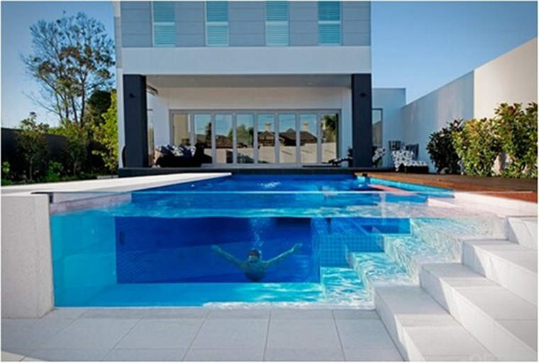 無邊際泳池的隱藏壁,如果是采用透明的玻璃材料,則無疑更具視覺沖擊力,這個特別的設想,已經(jīng)成為現(xiàn)實;