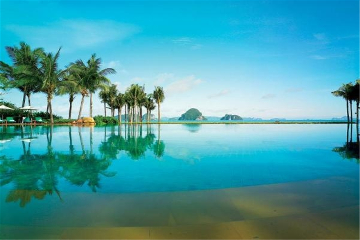 就像普拉灣將麗思卡爾頓酒店的奢華體驗(yàn)提升到了前所未有的高度,這家度假酒店的泳池也提高了視覺吸引力的標(biāo)準(zhǔn)。泳池的無邊設(shè)計(jì)模糊了池水和遠(yuǎn)處藍(lán)得不真實(shí)的安達(dá)曼海的界線。泄漏真相的唯一線索是從攀牙灣海面上突出的橡皮軟糖一般的巖溶山。