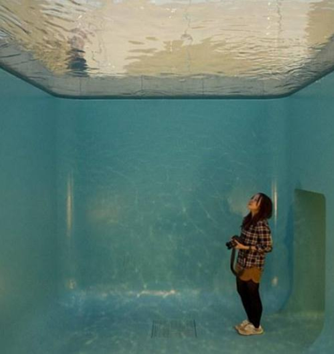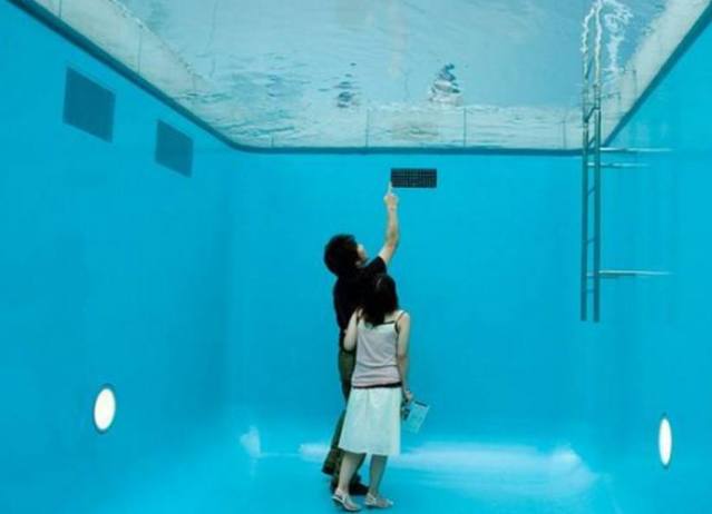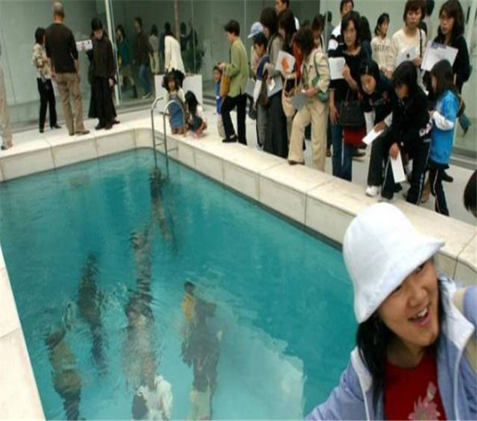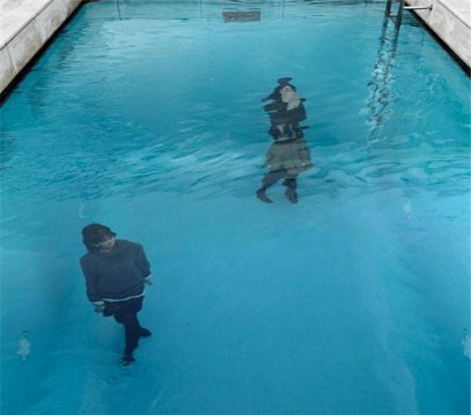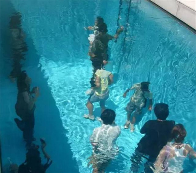 謎底揭開,原來是一個底部采用透明材料的泳池設計,池底下面是一個隔空房間。